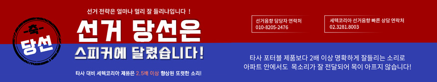 전화 02-515-4701 평일 오전10시 ~ 오후6시 휴대폰 010-2423-0217 365일 연중무휴 24시간 상담가능 전화 02-714-2476 세텍코리아 (선거음향전문)